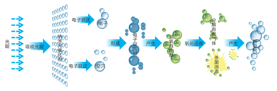 負(fù)電荷的電子,這些電子和空氣中氧氣結(jié)合形成負(fù)氧離子,同時(shí)在產(chǎn)品表面形成同樣數(shù)量的電子空穴對(duì),這些電子空穴對(duì)具有很強(qiáng)的氧化還原功能,能夠?qū)?br>空氣中的有害氣體進(jìn)行分解,殺滅細(xì)菌病毒。