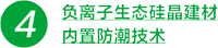 星立方自行研發(fā)的專用防潮體系使得負離子生態(tài)硅晶板可以拒絕大部分液態(tài)水分子的進入,同時又不限制氣態(tài)水分子的交換,這樣既保證防潮性,又保持了透氣性,同時大大加強了硅晶板的強度,從而帶來了它的呼吸功能。