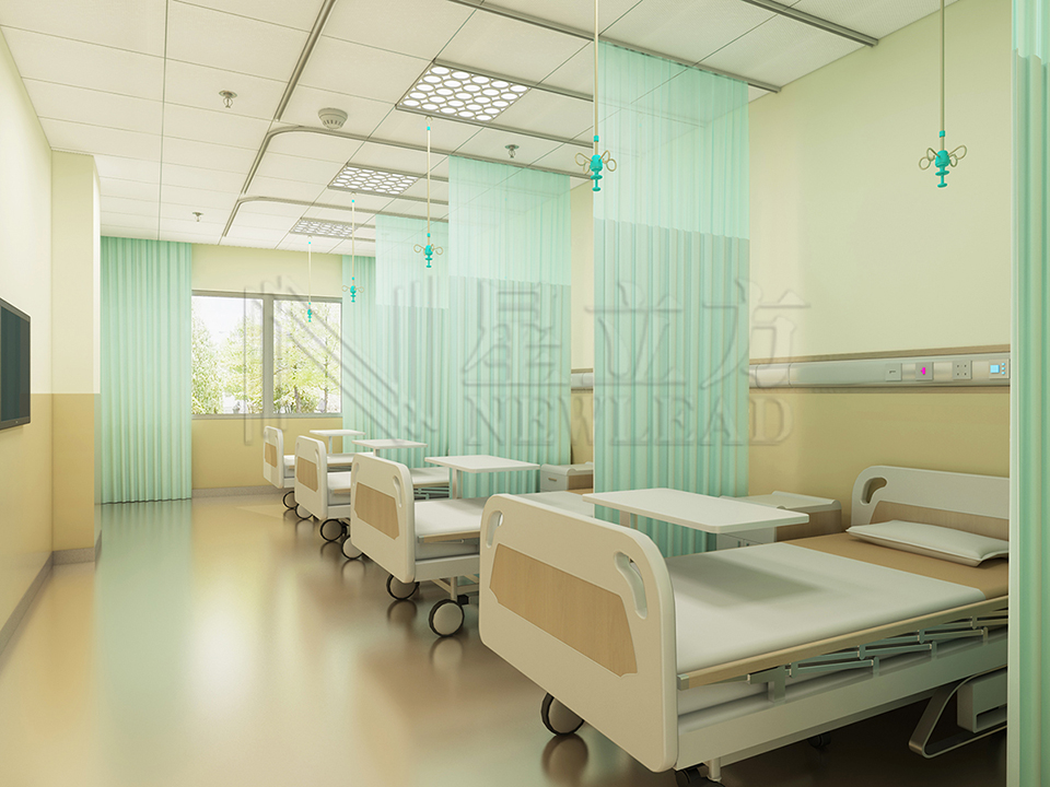 組合龍骨和輸液軌道以及隔簾軌道重合在一起,改變了傳統(tǒng)吊頂龍骨與軌道交叉交錯的情況,吊頂變得整齊劃一,不再凌亂。