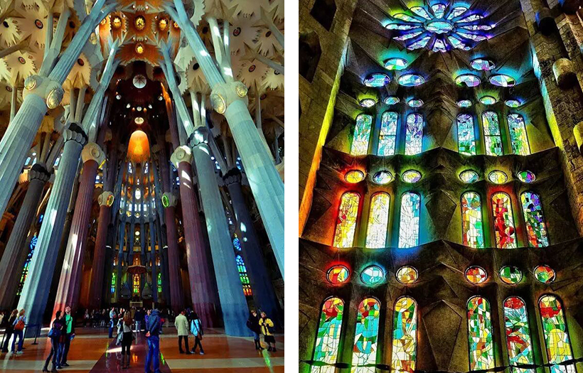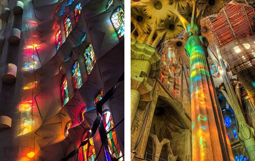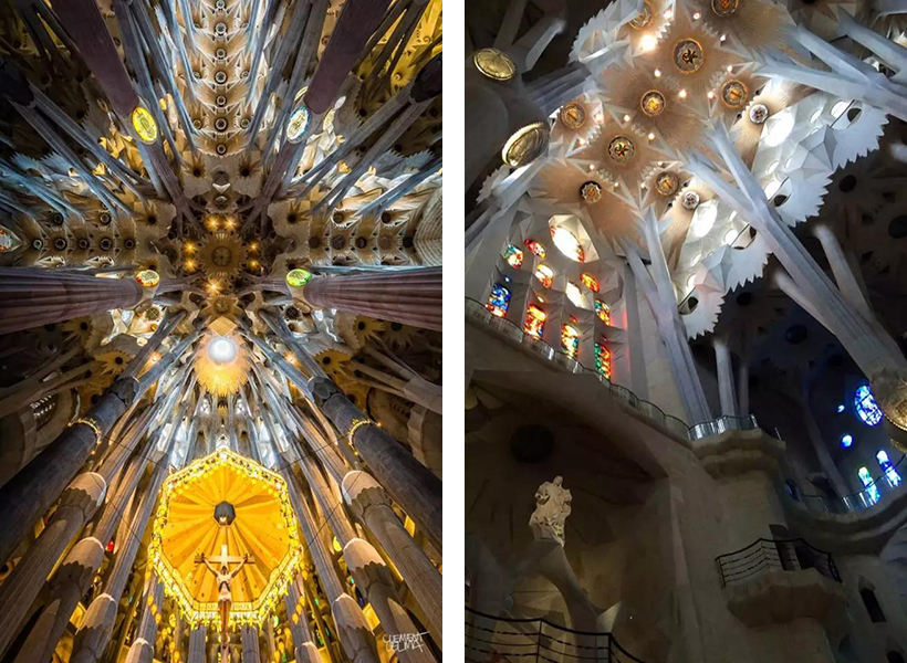 此外,高迪還巧妙地利用了光效來增強(qiáng)教堂的感染力。奇幻多變的光影效果搭配鬼斧神工般的創(chuàng)作,已經(jīng)完全突破了傳統(tǒng)的宗教建筑設(shè)計(jì)規(guī)范。