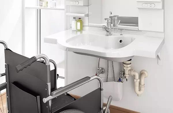 盥洗區(qū):應(yīng)保證老人能坐姿操作,并有適宜的臺面和充足的儲藏空間。