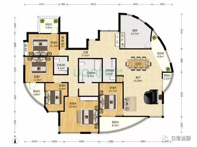 五室兩廳一廚三衛(wèi)六陽(yáng)臺(tái),東南西北全通透。霸氣外露!