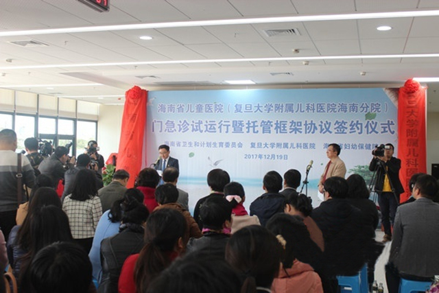 在試營(yíng)業(yè)儀式上,海南省衛(wèi)計(jì)委和復(fù)旦大學(xué)附屬兒科醫(yī)院簽署了框架協(xié)議,委托復(fù)旦大學(xué)附屬兒科醫(yī)院對(duì)海南省兒童醫(yī)院進(jìn)行全面管理。