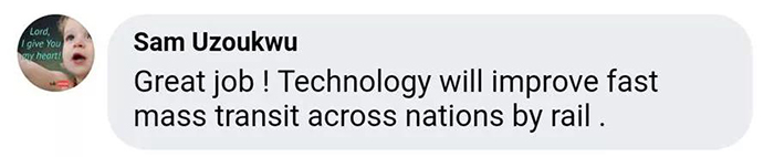 Sam Uzoukwu:真棒!高科技將通過鐵路實現(xiàn)國家間的高速軌道運(yùn)輸。