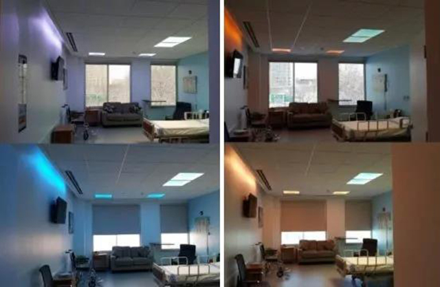 美國費(fèi)城兒童醫(yī)院同樣安裝了晝夜節(jié)律燈,為患者設(shè)定睡眠——覺醒周期。這些燈在清晨時為低強(qiáng)度的暖色溫,在上午時為冷色溫,在下午時為高強(qiáng)度,在晚上時又回到低強(qiáng)度的暖色溫。它專門用于緩沖醫(yī)院對患者正常睡眠——覺醒周期的干擾。在醫(yī)院,白天通常不夠亮,或者在晚上不夠黑,壓制了人身體的自然模式。因此,患者的節(jié)律經(jīng)常在醫(yī)療環(huán)境中會被打亂。保持有規(guī)律的睡眠——覺醒周期被視為醫(yī)療行為部門的一個重要臨床工具,該部門治療患有醫(yī)學(xué)問題的兒童,這些兒童也具有潛在的行為狀況,例如抑郁、焦慮和自閉癥。
