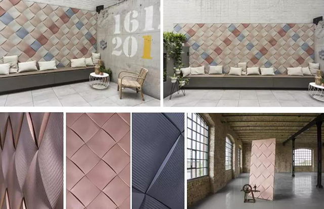 例如,有一種混凝土實(shí)驗(yàn)性澆筑模板技術(shù),設(shè)計(jì)師利用棕櫚席創(chuàng)造出了獨(dú)特的混凝土表面紋理,進(jìn)行創(chuàng)新和改造后,這種原本冰冷的工業(yè)材料無(wú)意中多了一絲人文情懷,視覺(jué)上混凝土好像變成了柔軟的地毯;再比如,某公司設(shè)計(jì)了“編織”混凝土瓷磚,其靈感來(lái)源于沙丘和傳統(tǒng)的編織工藝,將它們大面積貼于墻面時(shí),形成了非常有趣的質(zhì)感反差——極像一面由布料編織出來(lái)的墻體,很難想象它是由堅(jiān)硬的混凝土創(chuàng)造而來(lái)。
