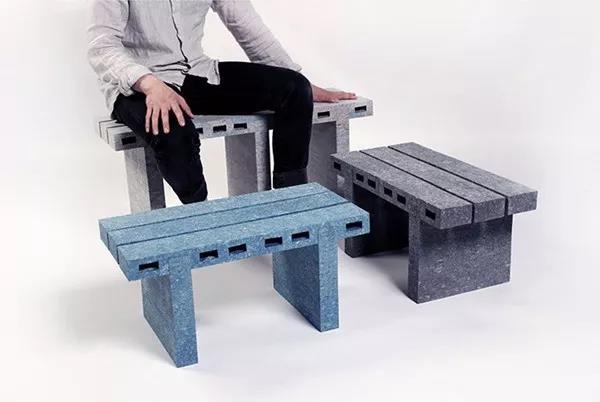 由廢棄的報(bào)紙制作而成的“大理石”凳子