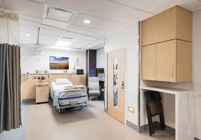 醫(yī)院戰(zhàn)略空間規(guī)劃主管Kathleen Hylka表示,新病房經(jīng)過了一系列的升級(jí)改造,大大提升了患者的使用體驗(yàn)。她說,升級(jí)后的智能照明系統(tǒng)可以根據(jù)不同的用途調(diào)整亮度和聚焦點(diǎn),非常靈活方便;通過降低走廊打掃清潔機(jī)器的噪聲,使得患者不會(huì)因這些聲音而感到不安。