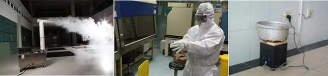 熏蒸法:采用0.5%~1.0%過氧乙酸水溶液或10 mg/m³~20 mg/m3二氧化氯,加熱蒸發(fā)或加激活劑,或采用臭氧(20 mg/m³)熏蒸消毒。