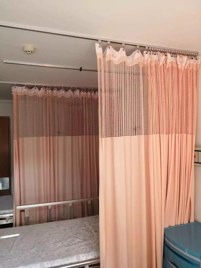 為了便于拆洗,窗簾、隔簾上沿布頭需采用洗滌后不易生銹的鋁合金或不銹鋼金屬材質(zhì)雞眼扣環(huán)制作(不采用白布帶插勾縫制方式),并于每0.2米制作1個扣環(huán),使用S型鉤吊掛,該制作掛扣方式拆洗安裝速度較帶插勾縫制方式快5倍以上。所以醫(yī)院隔簾窗簾應(yīng)該設(shè)計使用便于快速拆除安裝的雞眼式簾頭,便于隔簾窗簾的及時換洗,降低院內(nèi)感染風(fēng)險。