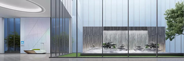 ▲在空間中引入綠植和假山,將自然之景融于醫(yī)院環(huán)境之中,讓患者忘卻煩惱,有利于心情愉悅,恢復(fù)健康。