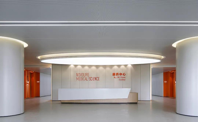 ▲醫(yī)院大廳以白色為主體色彩,使空間開闊明朗;輔助顏色是暖色調(diào)米黃色,營造親切、溫馨的氛圍;綠植和空間中的導(dǎo)視牌成為區(qū)域中的點(diǎn)綴色彩,空間氛圍生動自然。
