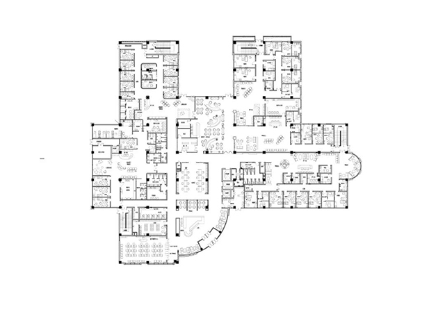 在萬柳院區(qū)的設(shè)計中,自由延展的平面布局不僅打破了醫(yī)院建筑水平枝狀的結(jié)構(gòu),通過自由分枝來解決不同功能組合,因為自由空間構(gòu)成對于多層庭院式醫(yī)院來說更加富有趣味性,保證醫(yī)院多個獨(dú)立單元的需求,而且打破了常規(guī)醫(yī)院門診-醫(yī)技-住院的固定序列,創(chuàng)造出多個尺度宜人的庭院空間。在規(guī)劃形態(tài)上遵循“核心集中,適度分散”的原則,內(nèi)部空間為公共-半公共-私密式的設(shè)計,實(shí)現(xiàn)了醫(yī)院運(yùn)營者的高端服務(wù)理念,也體現(xiàn)了我們建筑師對于建筑品質(zhì)與細(xì)節(jié)的追求。