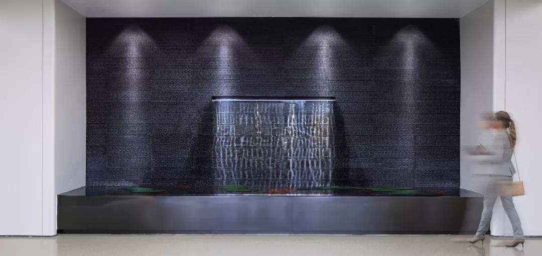 在體現(xiàn)醫(yī)院文化方面,緊密圍繞泰山、泉水、竹林這些文化符號(hào),并且所有藝術(shù)品都與生命醫(yī)學(xué)相關(guān)。在突出空間與自然的關(guān)系方面,孫亞明大膽挑戰(zhàn),采用6m×6m的水流幕墻(模仿泰山的硯石)、以雕塑為核心的小水景,將水引入室內(nèi),其中一處漩渦式水景更是難得一見(jiàn),無(wú)論從設(shè)計(jì)還是施工都充滿挑戰(zhàn);采用借景、退讓等多種手法,讓空間富有變化。對(duì)于水景的維護(hù),有些醫(yī)院管理者或許覺(jué)得比較麻煩,而孫亞明則認(rèn)為,不容易維護(hù)的東西,可能恰恰是醫(yī)院建筑空間需要的。