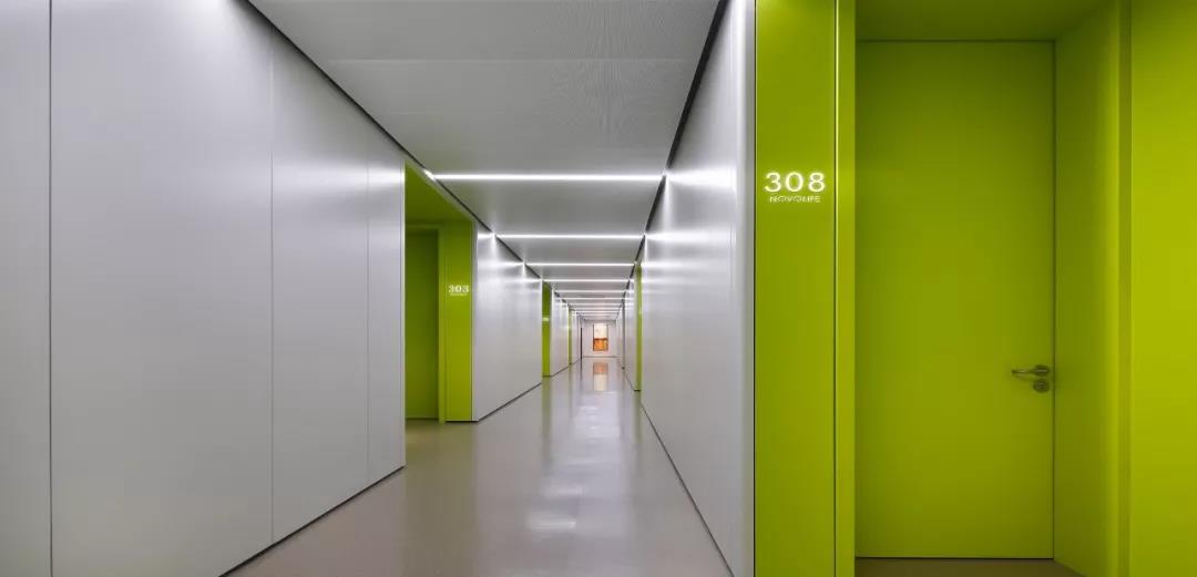 在用色方面,孫亞明秉持的原則是:不采用傳統(tǒng)認(rèn)知的色彩。他利用大面積的、形成鮮明對(duì)比的顏色來(lái)區(qū)分不同功能區(qū),幫助人們快速地到達(dá)目的地;顏色的配比遵從黃金分割率,整個(gè)環(huán)境的色彩搭配非常協(xié)調(diào);顛覆了醫(yī)療機(jī)構(gòu)內(nèi)的傳統(tǒng)用色慣性,大面積地使用了綠色和黃色,使得空間給人耳目一新、眼前一亮的感覺(jué)。雖然在項(xiàng)目實(shí)現(xiàn)之前,很多人都對(duì)這種大膽用色的效果充滿忐忑,但是項(xiàng)目完工后,真實(shí)效果大大出乎意料。不得不說(shuō),這是一次魄力的體現(xiàn),不僅包括孫亞明敢于突破的魄力,也包括諾萊國(guó)際醫(yī)學(xué)中心項(xiàng)目管理團(tuán)隊(duì)敢于相信專業(yè)設(shè)計(jì)師、勇于嘗試的魄力。而魄力來(lái)自信心,信心源于實(shí)力,實(shí)力則基于積累。