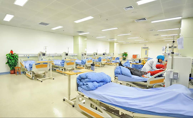 ▲透析大廳中的床靠墻布置