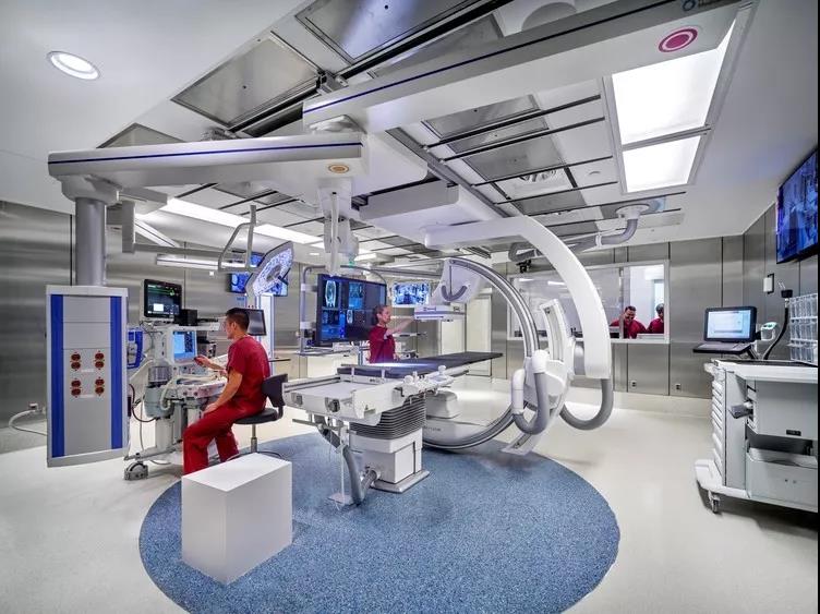 臨床樓層延續(xù)了不過(guò)時(shí)的美感,采用了包括木材、石材這類舒緩,安靜的材料。一個(gè)典型的臨床樓層有一個(gè)空中大廳,12個(gè)靈活的手術(shù)室和36個(gè)私人的準(zhǔn)備和恢復(fù)的房間。準(zhǔn)備和恢復(fù)在同一個(gè)房間有助于最大限度的減少患者的活動(dòng),并為患者還有家屬和護(hù)理團(tuán)隊(duì)提供安心。