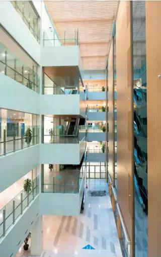 醫(yī)療街有效擴(kuò)大了患者、探視人員的公共活動(dòng)空間,使室內(nèi)功能得以完善,從而獲得了寧靜、高效的醫(yī)療灰空間。同時(shí),醫(yī)療街引入自然光照及通風(fēng),極大地改善了醫(yī)院室內(nèi)空氣質(zhì)量及就醫(yī)體驗(yàn)。