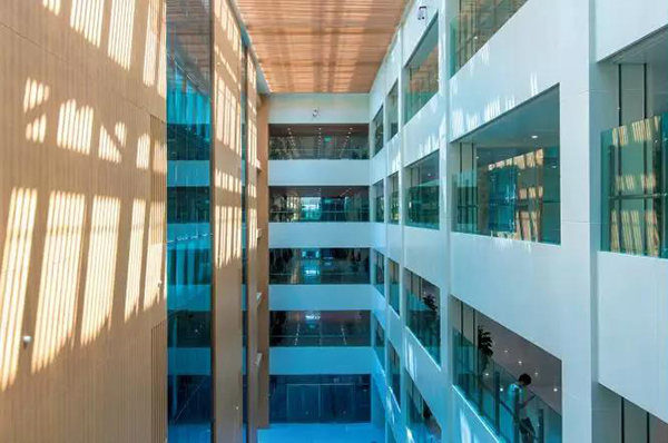 木紋與白色鋁單板不但營造出良好室內(nèi)氛圍,更易于清潔維護(hù)
