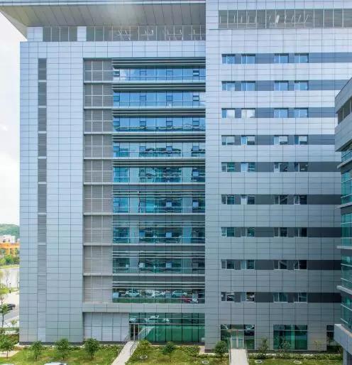 同濟(jì)醫(yī)院光谷院區(qū)的門窗及外墻均運(yùn)用了現(xiàn)代節(jié)能材料,建筑整體能耗遠(yuǎn)低于國家能耗標(biāo)準(zhǔn)。
