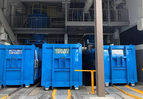 “氣力式垃圾被服分類收集系統(tǒng)”利用中央收集站內(nèi)的風機使管道內(nèi)產(chǎn)生負壓,打開垃圾排放閥或污衣排放閥,通過垃圾管道或污衣管道,將垃圾或污衣運輸至垃圾集裝箱或污衣收集器內(nèi)。