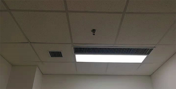 以礦棉板、巖棉板為吊頂材料的走廊或者房間,一方面會(huì)出現(xiàn)安裝了消防喇叭、監(jiān)控設(shè)備的吊頂變形;另一方面房間內(nèi)燈具或風(fēng)口安裝位置與吊頂分割不協(xié)調(diào),影響整體美觀效果,如下圖所示燈具和出風(fēng)口在房間內(nèi)不居中。