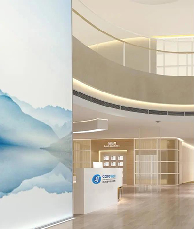 進(jìn)入門診大廳,就已經(jīng)開始步入畫卷中,自然地慢下腳步、靜下心,讓人如有漫步云間的飄然之感,伴著曼妙的音樂,一杯咖啡、一本書籍、一份忘我的休憩。舉目環(huán)望,浮云縹緲、霧氣氤氳,遠(yuǎn)處若隱若現(xiàn)青色的山水,定義著畫卷的詩心,讓這份靜謐驅(qū)散心中的焦慮,恢復(fù)內(nèi)心的平靜和對美好的期待。