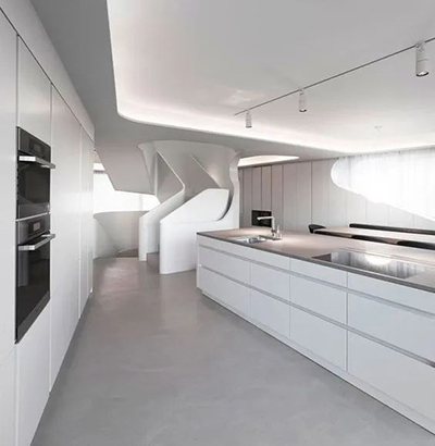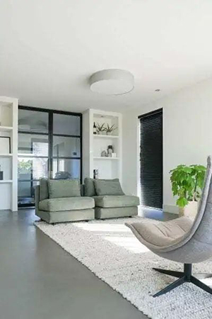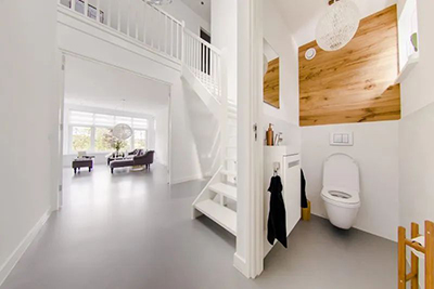 a、水泥自流平:具有水泥基材質(zhì)的冷靜素雅感覺,深受設(shè)計(jì)師喜歡。
