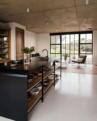 自流平深灰色地坪以最樸素的方式成為空間背景。