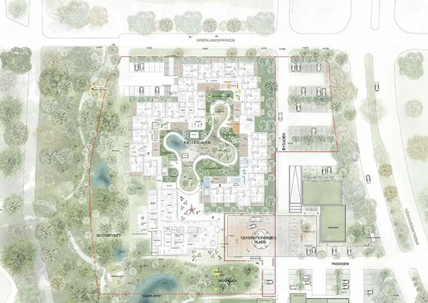 位于丹麥吉辛(Gjesing)的克瑞伯塞波(Krebsebo)養(yǎng)老院中心不僅將為老年人提供100個(gè)新家園,它還將成為一個(gè)名為“老年城”的小鎮(zhèn)的中心,連接養(yǎng)老院中心和吉辛的其他地方,為老年居民創(chuàng)新生活。