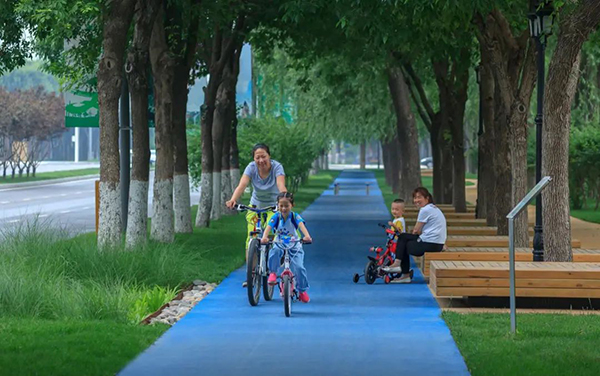作為代表性的環(huán)京新城,以百萬人口中等城市為規(guī)劃目標(biāo)的固安,街道是非常重要的城市公共空間,承載著多重的疊加效益。阿普貝思以親自然為理念,對(duì)華夏孔雀大道進(jìn)行全方位升級(jí),景觀海綿一體化的設(shè)計(jì)不僅解決了暴雨積水的問題,又提升了整體環(huán)境,讓老舊空間煥發(fā)出新的活力,親自然的慢行系統(tǒng),為人們創(chuàng)造了更多生活方式的可能。