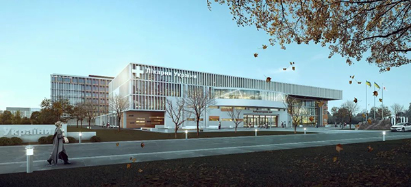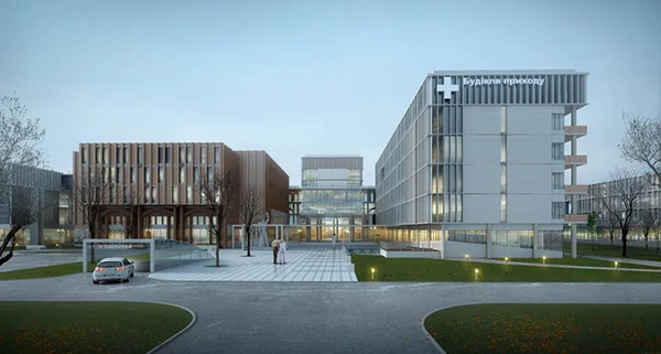 醫(yī)院設計的初衷從尊重當?shù)氐臍v史文化,反映烏克蘭本民族的建筑文化特征角度出發(fā),試圖在傳統(tǒng)和現(xiàn)代設計手法中尋找一個恰到好處的平衡點??倛D設計上在門診大廳和住院部入口,急診入口前留出開闊的前廣場,適于人流的疏散,同時通過景觀,地表鋪裝形成有效的空間層次序列,廣場元素同時也是歐洲古建筑群圍合空間中重要的組成部分,在烏克蘭的城市肌理中亦是重要的組成部分。