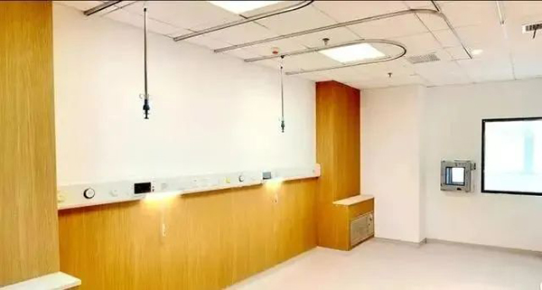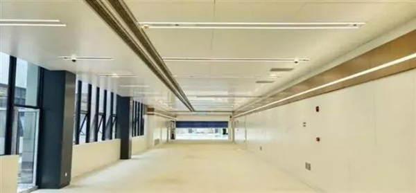 走進(jìn)醫(yī)院內(nèi),大廳寬敞明亮,墻面以木色金屬板與白色金屬板結(jié)合的形式,木色金屬板劃分功能區(qū)域,讓人一目了然,樓層欄板以白色金屬板分割,與建筑形式內(nèi)外相融。吊頂系統(tǒng)采用集成吊頂,與墻體無(wú)縫對(duì)接,裝配化程度高。公共走道地面采用無(wú)縫環(huán)氧磨石地面,一次性鋪裝完成,牢固耐久、平整度高。醫(yī)院病房、手術(shù)室、大廳等各處精裝修施工均已完成,正等待相關(guān)醫(yī)療設(shè)備入場(chǎng)。