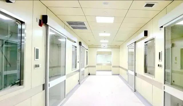 負(fù)壓病房——醫(yī)院普通病房日常是正壓狀態(tài),轉(zhuǎn)換成傳染病房時(shí)則變?yōu)樨?fù)壓運(yùn)行。該轉(zhuǎn)換機(jī)制通過(guò)大小風(fēng)機(jī)實(shí)現(xiàn)轉(zhuǎn)換。住院樓每一層都設(shè)置獨(dú)立風(fēng)道與2套風(fēng)機(jī),平時(shí)運(yùn)行小風(fēng)機(jī),當(dāng)需要收治傳染病人時(shí),通過(guò)轉(zhuǎn)換閥門(mén)運(yùn)行大風(fēng)機(jī),增大風(fēng)量,普通病房馬上轉(zhuǎn)成負(fù)壓病房。負(fù)壓病房均設(shè)置雙門(mén)互鎖傳遞窗和呼叫對(duì)講設(shè)備,可有效避免在疫情期間傳送物品時(shí)的直接接觸,保證醫(yī)院整體的安全性,充分打造‘平戰(zhàn)結(jié)合’應(yīng)用場(chǎng)景中的‘雙保險(xiǎn)’。