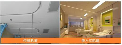 改變傳統(tǒng)軌道,采用能夠隱藏在吊頂內(nèi)部的隔簾軌道、輸液軌道,這種嵌入式軌道的其優(yōu)勢是: