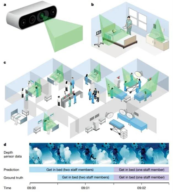 在重癥監(jiān)護室ICU中:(1)環(huán)境智中的計算機輔助患者運動監(jiān)測,可使得由神經(jīng)肌肉損傷可能導(dǎo)致一年的死亡率降低40%。(2) 在對ICU室中安裝了深度傳感器的184個視屏數(shù)據(jù)集上進行驗證時,該算法顯示出 87%的靈敏度和89%的特殊性。